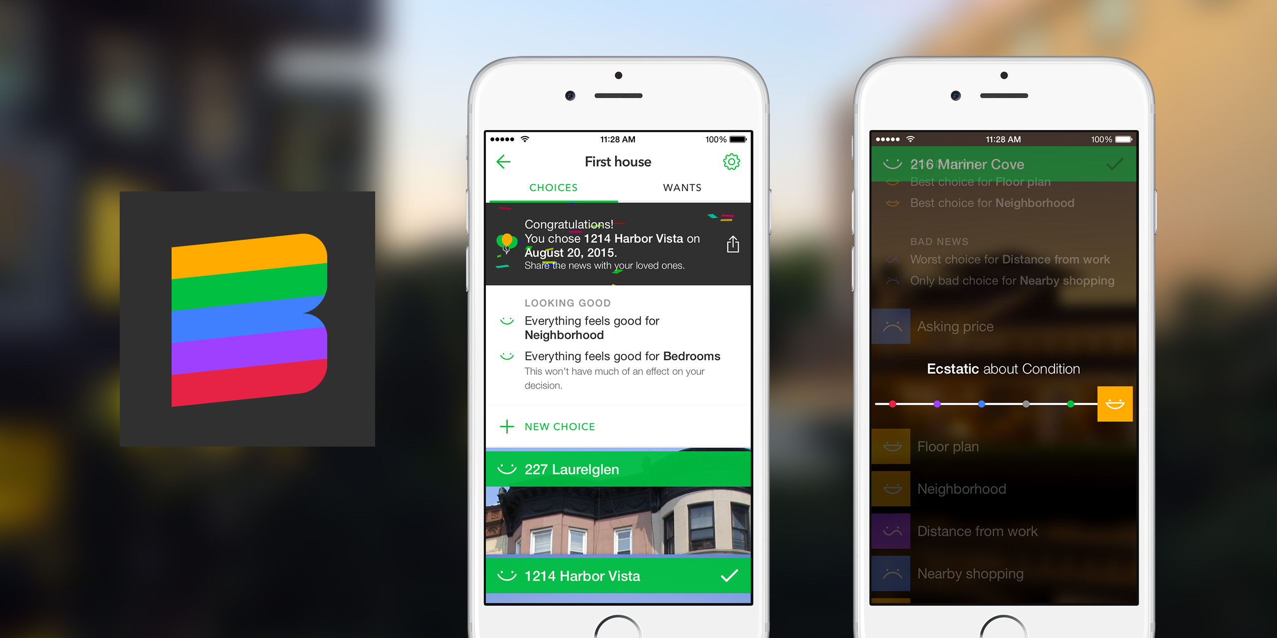 Boldened 1.0 released in August 2015; more than a new name, it was rewritten and featured a new UI with emphasis on the photos added for choices, and exposing more data trends. 2.0 was to follow later in 2015 or early 2016, with another overhaul looking forward to collaborative decisions, but I abandoned the project for other opportunities.